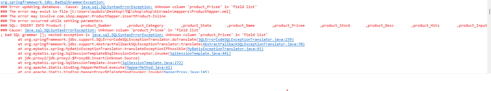 쇼핑몰 프로젝트 진행 중 상품 등록에 실패하였다.